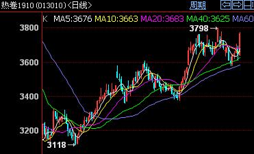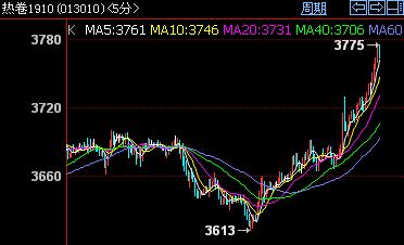 5月21日,热卷板期货偏强震荡。HC1910开盘3642元/吨,收盘3765元/吨,盘中高点3775元/吨,低点3637元/吨。成交量大幅增加,为961614手,持仓量继续回升,为617514手。       【技术面】         技术面,主力合约放量上行,短线偏强运行。目前市场供需相对稳定,价格存在一定成本支撑,在螺纹钢强劲上扬带动下,今日热卷板表现良好,近期弱势整理局面得到明显改善,后期走势存在上涨突破的要求。下一交易日关注上方3800的突破情况。       【操作指南】       短线方面,波段操作;中长线方面,趋势空单离场,多单入场。(仅供参考)       【相关市场概况】      | 市场分类 | 品种合约 | 涨跌幅 | 收盘价 | 开盘价 | 最高点 | 最低点 | 成交量 | 持仓量 |   | 期货 | 铁矿石1909 | ↑9.5 | 717 | 706 | 719.5 | 694 | 2763960手 | 1616244手 |   | 焦煤1909 | ↑13 | 1403.5 | 1388 | 1406 | 1378 | 261820手 | 225344手 |   | 焦炭1909 | ↑112 | 2271 | 2171 | 2275 | 2166.5 | 679138手 | 362086手 |        【现货面】       今日现货市场以稳为主。主导市场看,上海地区平稳,厚规格报价4010元 /吨;天津地区涨 10元 /吨,报价3920元 /吨。(详细 )期货偏强震荡,现货成交一般,多地报价暂稳。( SWQX组稿 请勿转载)     (此信息仅供客户作为参考,并不构成对客户的直接决策建议,客户不应以此取代自己的独立判断,客户做出的任何决策与商务前线无关)     商务前线公众号(微信号:www_swqx_com)中国最全面的钢铁信息平台,每天为你传递国内外最新鲜的钢铁资讯!!!扫描首页二维码关注!!!