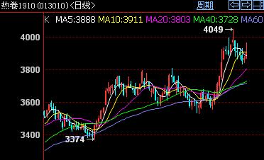 7月9日,热卷板期货高位震荡。HC1910开盘3870元/吨,收盘3910元/吨,盘中高点3965元/吨,低点3868元/吨。成交量大幅回升,为589850手,持仓量变动有限,为658252手。       【技术面】       技术面,主力合约小幅反弹,继续在3800-4000区间整理。环保炒作过后,市场重回平静,从商家反馈来看,当期资源成本偏高,加之当前终端需求有限,低价成交仍难以放量,贸易商大跌意愿不强。预计短期走势不会出现质的变化,区间震荡仍是主流。       【操作指南】       短线方面,波段操作;中长线方面,趋势多单持有。(仅供参考)       【相关市场概况】      | 市场分类 | 品种合约 | 涨跌幅 | 收盘价 | 开盘价 | 最高点 | 最低点 | 成交量 | 持仓量 |   | 期货 | 铁矿石1909 | ↑34.5 | 880.5 | 866 | 899.5 | 865 | 2951682手 | 1425886手 |   | 焦煤1909 | ↑12 | 1384 | 1379.5 | 1393 | 1375.5 | 151574手 | 161194手 |   | 焦炭1909 | ↓9.5 | 2119 | 2123 | 2152.5 | 2116 | 361724手 | 305470手 |        【现货面】       今日现货市场小幅上调。主导市场看,上海地区涨10元 /吨,厚规格报价3890元 /吨;天津地区涨 30元 /吨,报价3860元 /吨。(详细 )期货高位震荡,现货跟随频繁调整,实际成交有限。( SWQX组稿 请勿转载)     (此信息仅供客户作为参考,并不构成对客户的直接决策建议,客户不应以此取代自己的独立判断,客户做出的任何决策与商务前线无关)     商务前线公众号(微信号:www_swqx_com)中国最全面的钢铁信息平台,每天为你传递国内外最新鲜的钢铁资讯!!!扫描首页二维码关注!!!